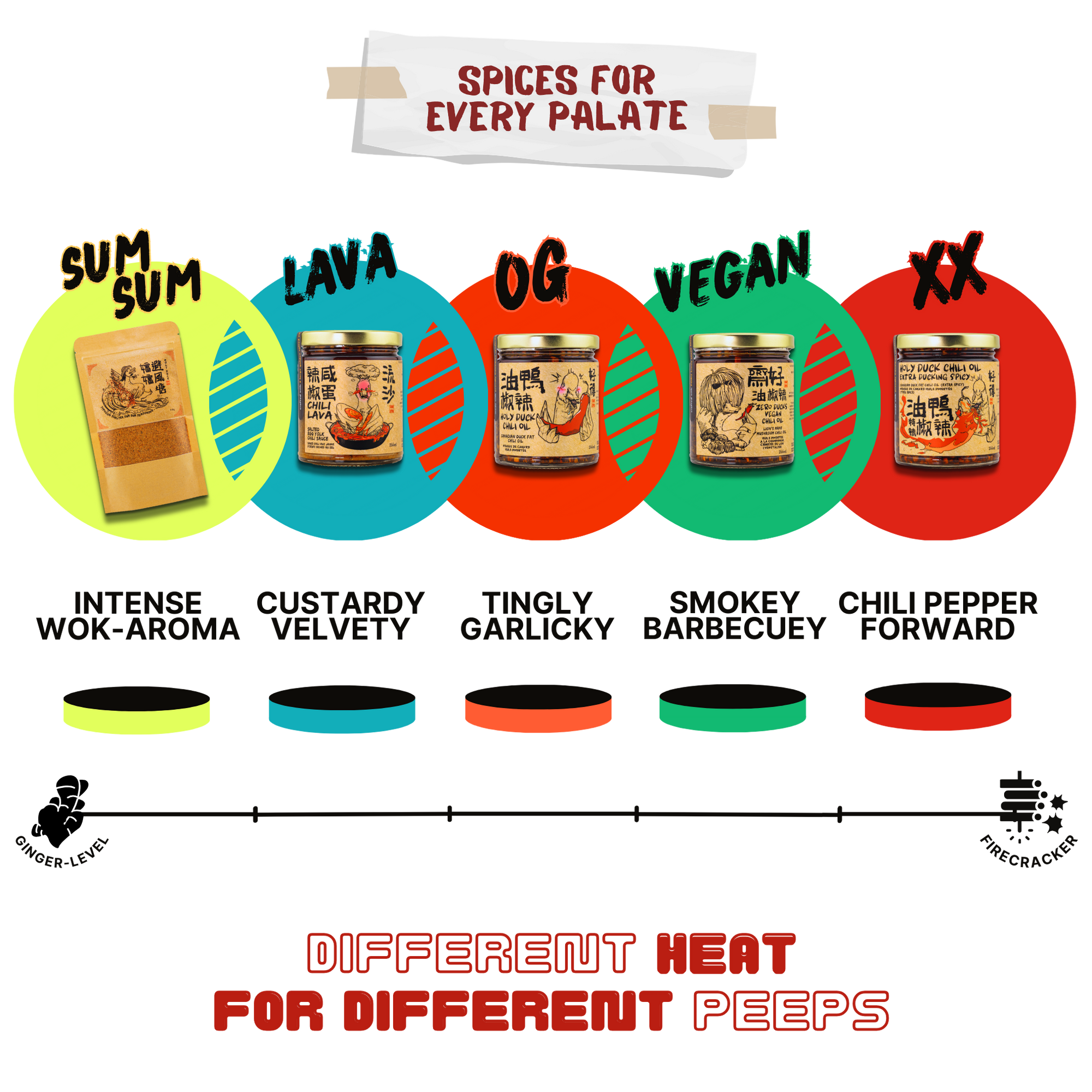 - Revive your day-old pasta or reheated stir-fry with a generous drizzle of Holy Duck Chili Oil.